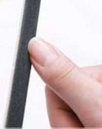 1 如果指甲边缘出现磨损,一定要用指甲锉磨平。要注意,指甲锉和指甲要保持一定的角度,一般以90度为宜。